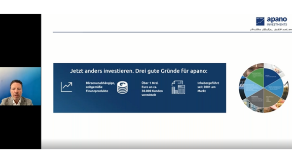 Die apano GmbH ist im Rahmen dieses Angebots nur als Vermittlerin tätig. Die Angaben im Rahmen dieser Produktdarstellung und zu der Emittentin beruhen wesentlich auf den Angaben der Emittentin und sind von der apano GmbH nicht im Einzelnen geprüft worden. Die apano GmbH übernimmt daher keine Gewähr für die Angaben.