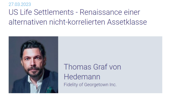 Anleger suchen in der Regel immer nach stabilen Renditen, die nicht mit ihren anderen Anlagen korrelieren. Eine der wenigen Anlageklassen, die dies wirklich bieten können, ist die Anlageklasse, die als „Life Settlement“ - in diesem konkreten Fall als der Zweitmarkt von US-Risikolebensversicherungen - bekannt ist.